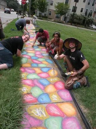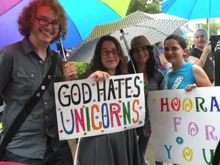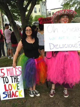 Coming all the way from Kansas to the doors of The Resource Center of Dallas to protest, hundreds of friends of our community came out to counter protest. "Hell Freezes Over" generated extreme hype, and amazingly enough, raised an undisclosed amount of funds through corporate sponsorships and donations to fix the ice machine. Great timing! Sidewalk chalk rainbow colored cobblestones were created just before the rain hit to welcome the fanatics. Perhaps the most touching was the love and humor and fellowship that radiated from the crowds standing strong in the rain, determined to shower the opposition with a greater sense of pride. You have to see the pics to believe it...