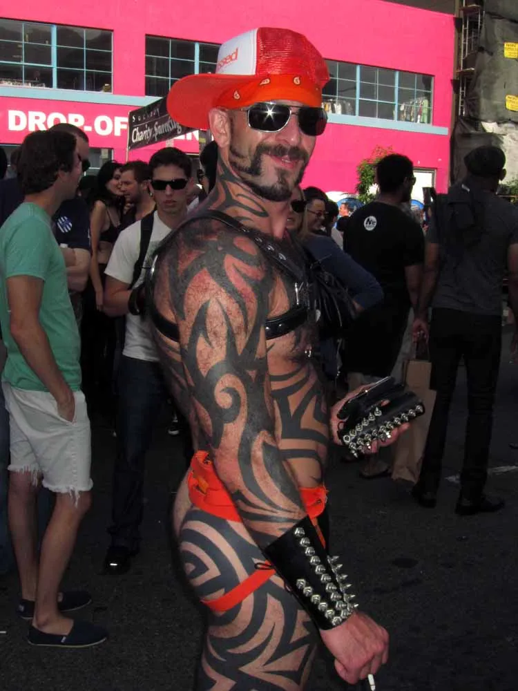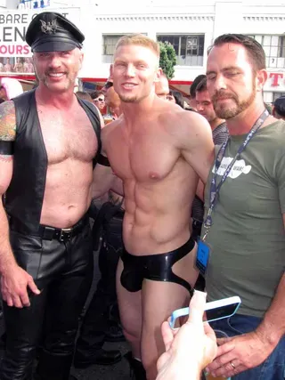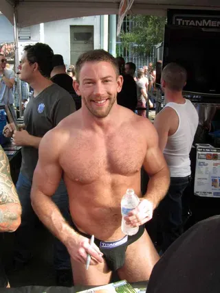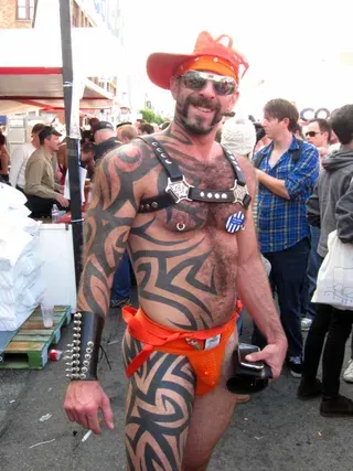 Rain threatened to dampen the festivities, but by mid-afternoon the sun was out and so were half a million exhibitionists and voyeurs. Two live entertainment stages at either end bookmarked five big city blocks of beer, food, leather, and bondage gear vendors. A line-up of six DJ's kept the 10th street Gold's Gym entertainment block dancing from 11am to 6pm. The Steamworks Baths' naked twister game was popular, as were the Titan, Raging Stallion, and Man's Hands booths, where the stars were on hand to sign autographs and take pictures with fans. Spanking and whipping booths were busy and the ladies had a special place to hang at the Venus Playground. By the end of the day, the crowds thinned a bit and became even more frisky, before heading to local watering holes, one of the big after parties, or perhaps a private dungeon.