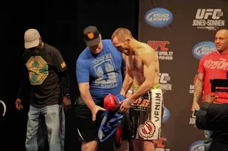 EDGE covered UFC 159 at the Prudential Center in New jersey and captured these great photos at the weigh-ins. Check out these hot fighters as they take their clothes off to step onto the scale!