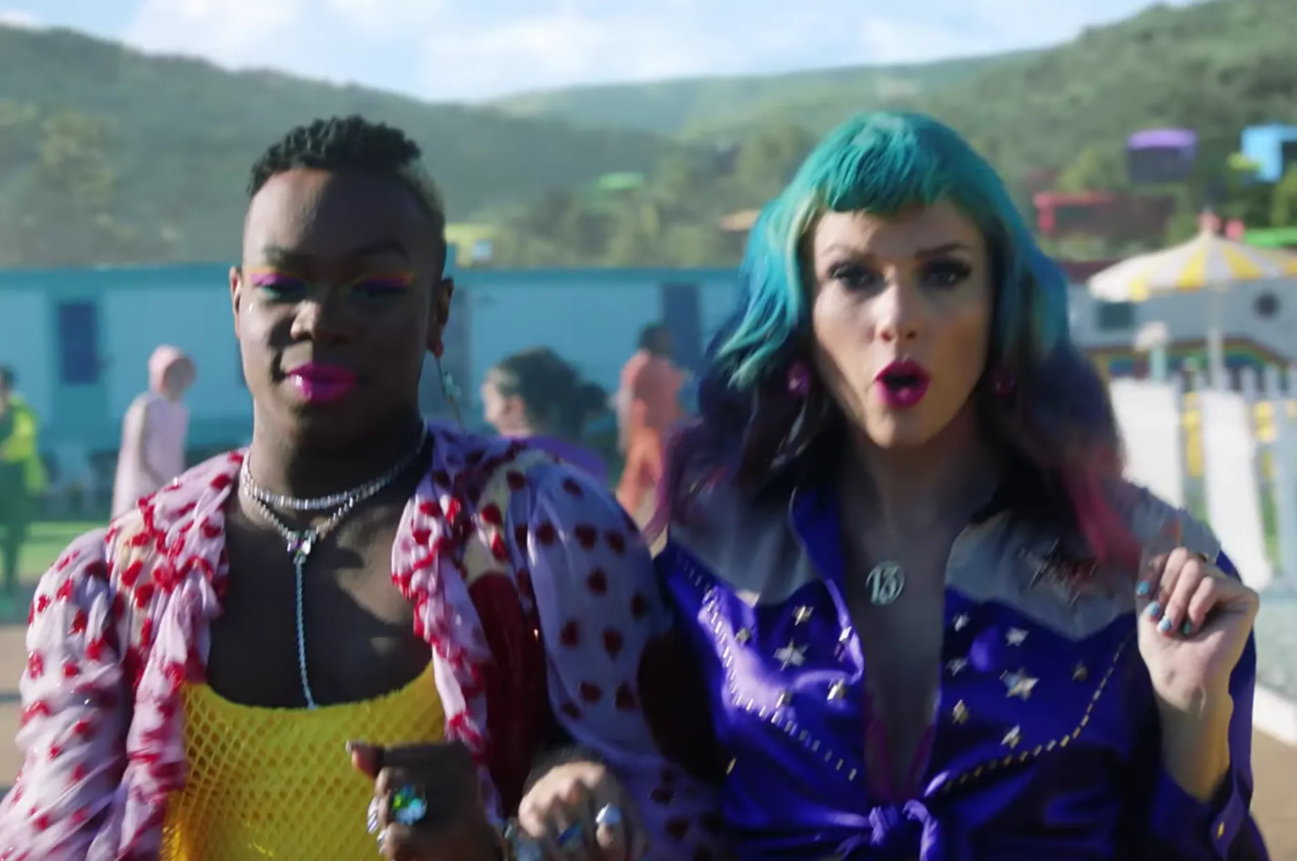 Directed by Drew Kirsch and Swift, the pop star is seen wandering around her neighborhood as anti-gay haters with homophobic signs try to stop everyone from enjoying themselves. The video climaxes with Swift meeting up with a fellow singer with whom she feuded.