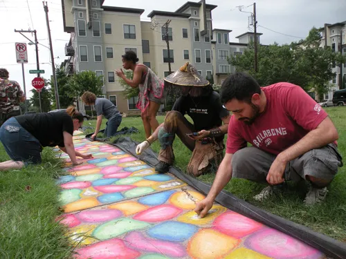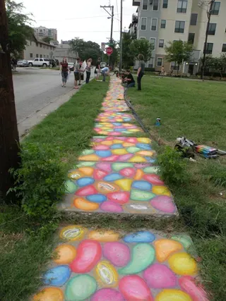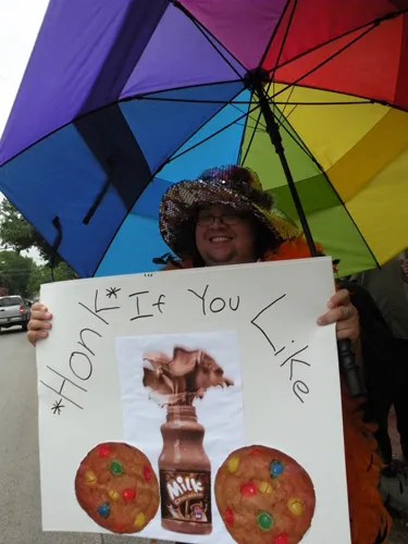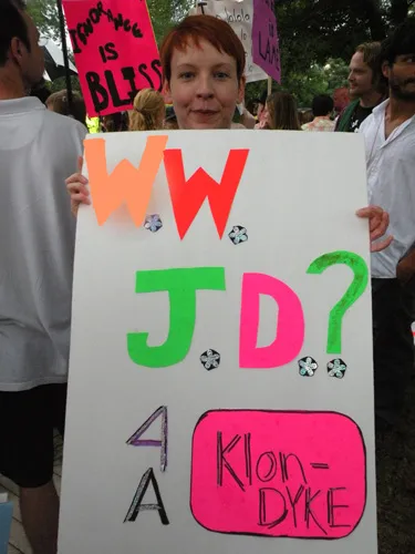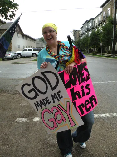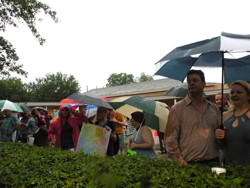 Coming all the way from Kansas to the doors of The Resource Center of Dallas to protest, hundreds of friends of our community came out to counter protest. "Hell Freezes Over" generated extreme hype, and amazingly enough, raised an undisclosed amount of funds through corporate sponsorships and donations to fix the ice machine. Great timing! Sidewalk chalk rainbow colored cobblestones were created just before the rain hit to welcome the fanatics. Perhaps the most touching was the love and humor and fellowship that radiated from the crowds standing strong in the rain, determined to shower the opposition with a greater sense of pride. You have to see the pics to believe it...