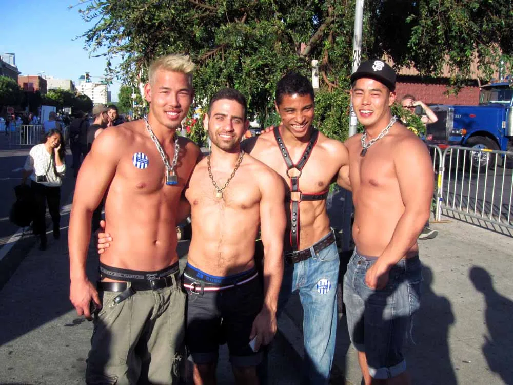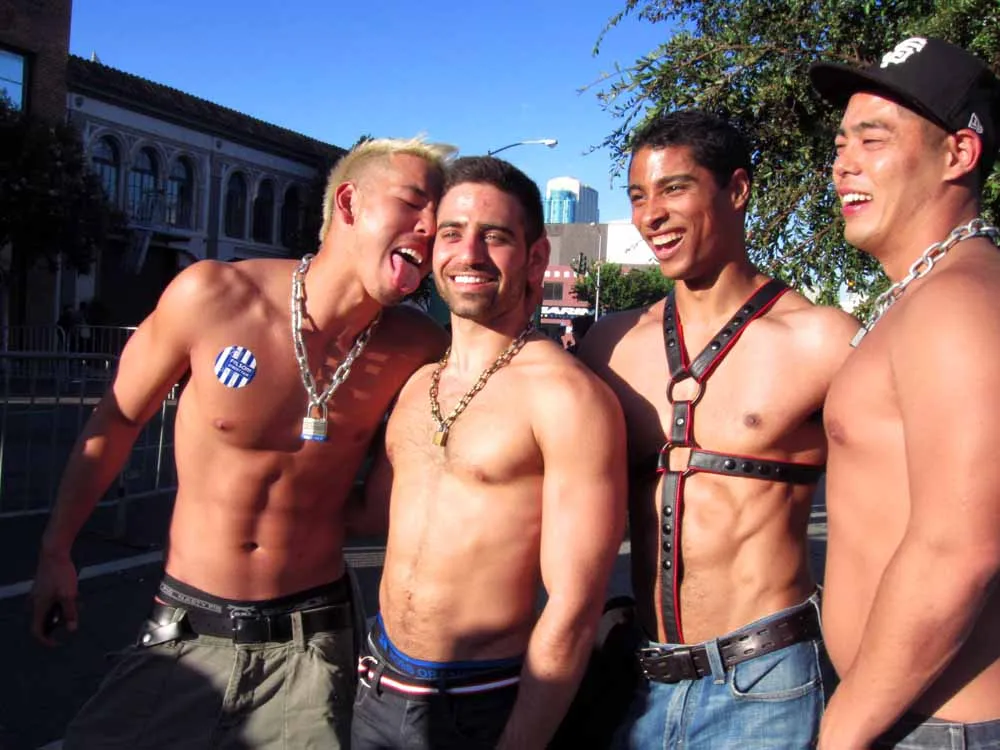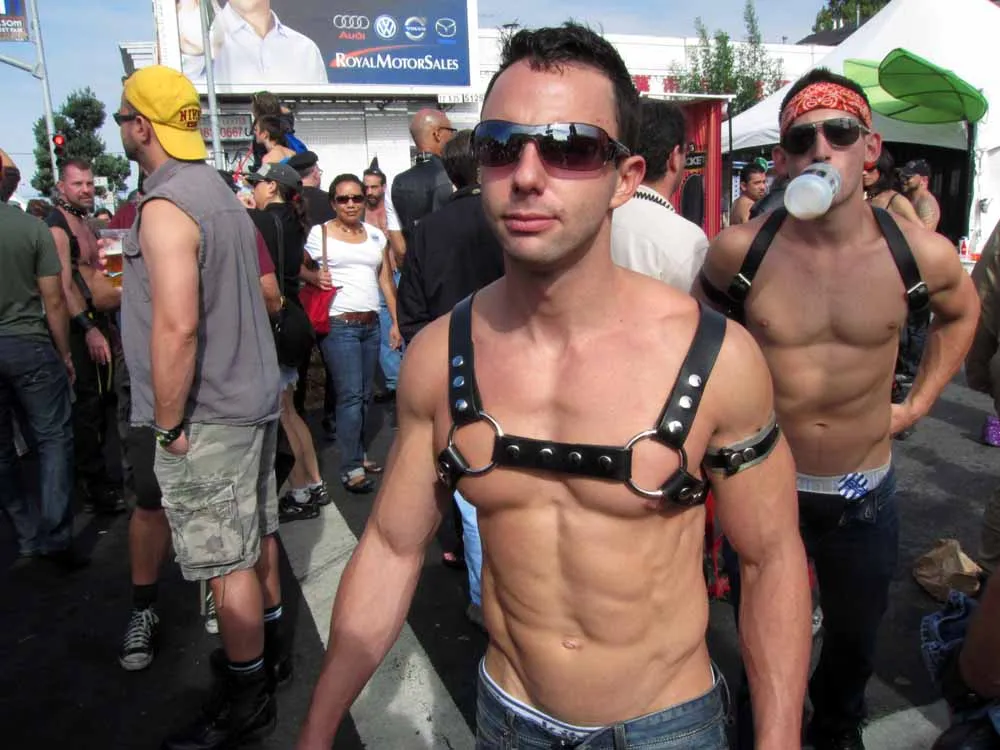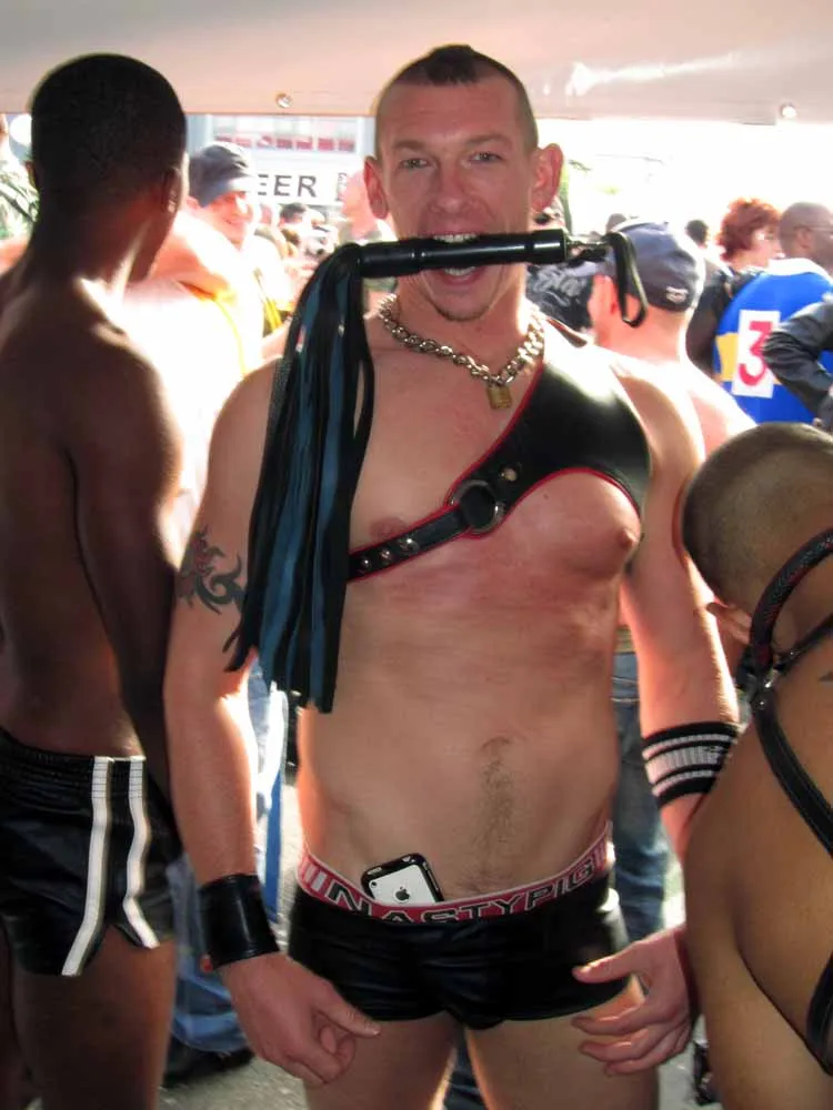 Rain threatened to dampen the festivities, but by mid-afternoon the sun was out and so were half a million exhibitionists and voyeurs. Two live entertainment stages at either end bookmarked five big city blocks of beer, food, leather, and bondage gear vendors. A line-up of six DJ's kept the 10th street Gold's Gym entertainment block dancing from 11am to 6pm. The Steamworks Baths' naked twister game was popular, as were the Titan, Raging Stallion, and Man's Hands booths, where the stars were on hand to sign autographs and take pictures with fans. Spanking and whipping booths were busy and the ladies had a special place to hang at the Venus Playground. By the end of the day, the crowds thinned a bit and became even more frisky, before heading to local watering holes, one of the big after parties, or perhaps a private dungeon.