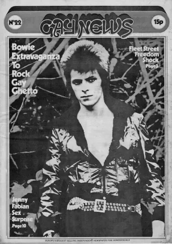 By the 1973 section, the world has changed quite drastically and (with apologies to Doris Day) the secret public is not so secret anymore. Primary in this change is the man who fell to earth, David Bowie. As Savage says “David Bowie blew the whole topic wide open.” Savage does an admirable job summarizing Bowie’s rise from clubs in Soho in 1965 though the Mr. Fish dresses of “The Man Who Sold the World” to the explosion of Ziggy Stardust. New to me were the facts that Bowie had done a benefit for the Gay Liberation Front in London in 1971 and that he had appeared quite extensively in the British publication “Gay News” (including on the cover).