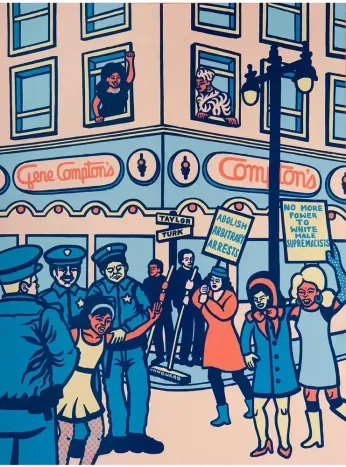 This year’s installment in the Political Notebook’s annual end-of-year op-art offerings showcases several seminal LGBTQ moments in the history of San Francisco’s Tenderloin neighborhood. Created by local artist Emily Fromm, it pays homage to the 1966 protests by queer and trans patrons of the now defunct Gene Compton's Cafeteria who were fed up with being harassed by police.