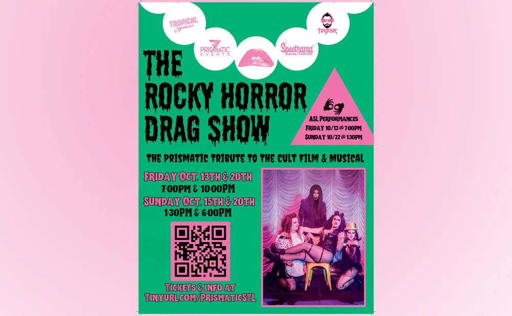 The protest is conjunction with an upcoming stage production of "Rocky Horror Drag Show"," being presented by the St. Louis theatrical drag company Prismatic Events. It plays for eight performances over two weekends. On Fridays October 13 and 20, the performances are at 7 and 10pm; On Sundays, October 15 and 20, performances are at 1:30 and 6pm. The venue is Tropical Liqueurs, 4104 Manchester Avenue St. Louis, MO 63110, for more information, follow this link.