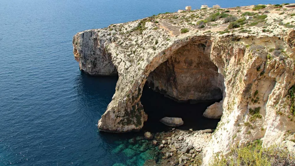 Our first stop is a scenic outlook with a vantage of the Blue Grotto, a rock formation on the island's southeast coast that forms vast caverns over teal water that seems luminescent in the daytime sun. But we aren't simply going to observe from afar: Isabelle has a surprise for us in the form of vouchers for the boat service that brings visitors right into the caverns. The boat driver expertly navigates the tiny bark through mildly choppy seas and noses gracefully into one cavern after the next as we make our way toward the huge rock formation we saw from above. The water is limpid and blue – and, we note, filled with large brown jellyfish. (These, we are assured, are harmless, and when two of our group go swimming later on, they report no problems with the creatures.)