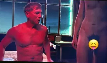 The second post is a still from the scene in which Apollo walks full frontal across a room to stand next to a gobsmacked Craig with a well-placed emoji over his privates.